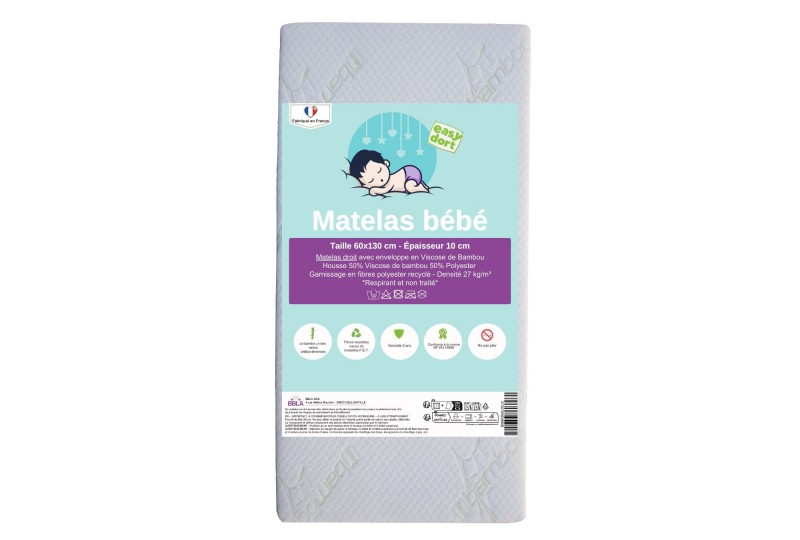 En choisissant notre matelas 60x130 cm Easy Dort, vous optez pour la qualité, le confort et la tranquillité d'esprit. Fabriqué en France, il assure la sécurité et le bien-être de votre bébé tout en respectant l'environnement. Profitez également de notre prix direct fabricant et de la livraison rapide pour rendre votre expérience d'achat encore plus agréable.