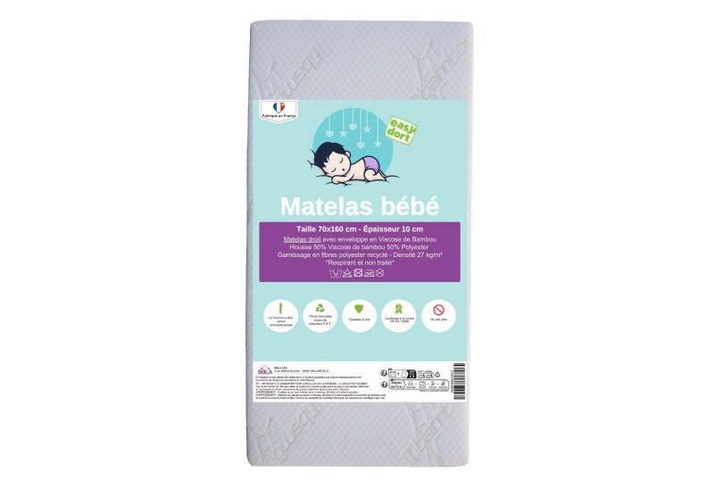 Entrez dans un monde où le confort se marie harmonieusement avec la responsabilité environnementale grâce à notre exceptionnel matelas 70x160 cm, d'une épaisseur de 10 cm. Fabriqué en France avec une méticulosité inégalée, ce matelas assure à votre enfant des nuits apaisantes tout en contribuant activement à la préservation de notre planète. Chez nous, les préoccupations pour la satisfaction de nos clients et le bien-être de la planète sont profondément ancrées dans nos valeurs.